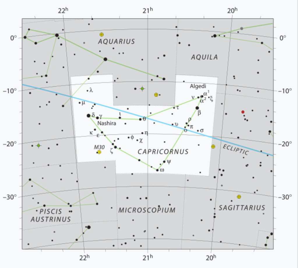 Capricorn is the tenth astrological sign of the zodiacs. It is an earth sign, represented by the constellation Capricornus, a ram/sea-goat which has the head of a goat and the tail of a fish. This symbolizes ones ability to navigate both the material world (goat) and the emotional realm (fish).